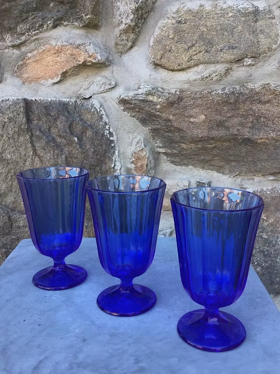 Vin & vattenglas 19 cl. Blå. 95 kr Produkten är tyvärr slut i lager. :( Dela Produktens historia & fakta Klassiska vin och vattenglas med medelhavskänsla. Glasen har en underbar blå färg.Höjd 12 cmVolym 15 clMaskindiskDet kan förekomma avvikelser från bilden vad gäller färger.