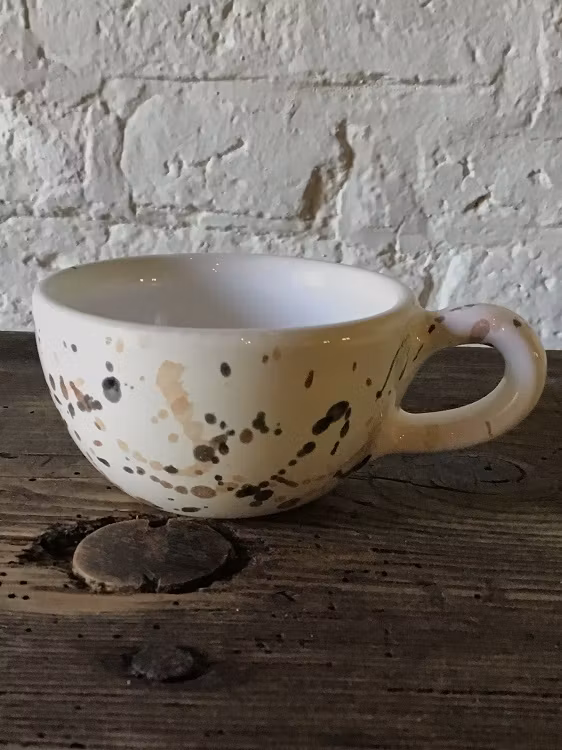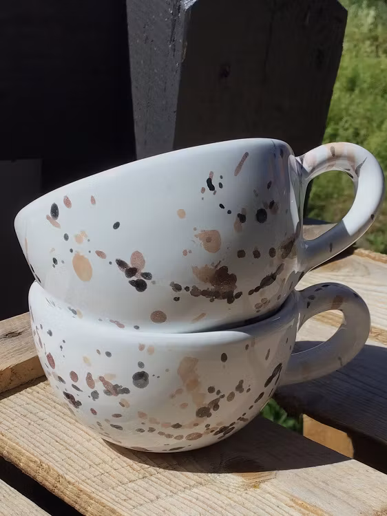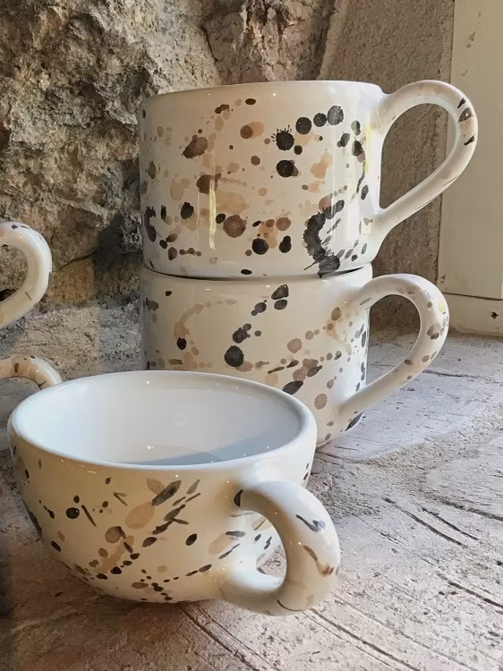 Den handgjorda koppen är dekorerad i olika färgnyanser med en speciell penselteknik som gör varje kopp unik.