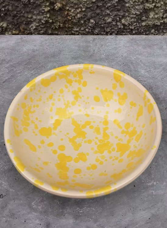 En anrik producent från södra Italien närmare bestämt i provinsen Lecce, keramikens mecka, producerar detta härliga, klassiska och prickiga mönstret. Det kallas också för spruzzi.