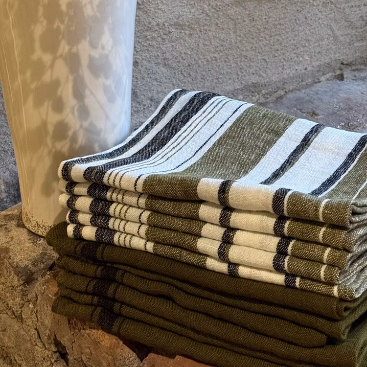 Handduk 100% linne. Ränder olive/svart/vit. 175 kr Produkten är tyvärr slut i lager. :( Dela Produktens historia & fakta Handduk i 100% linne. Storlek 46 x 70 cmMaterial 100% linne. Kan tvättas i 60 graderDesignad i FrankrikeProducerad i EU Varje exemplar är unikt och det kan därför förekomma avvikelser från bilden vad gäller färger.