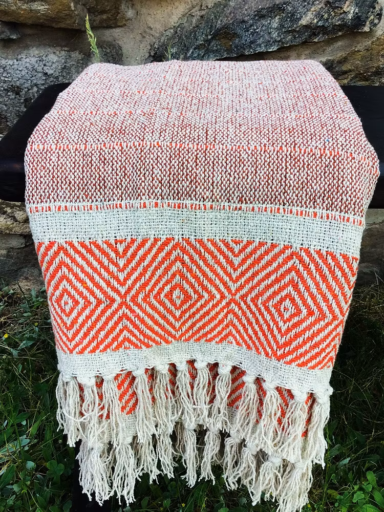 Stort härligt pläd med tofsar i recirkulerad bomull. Kan också användas som duk.