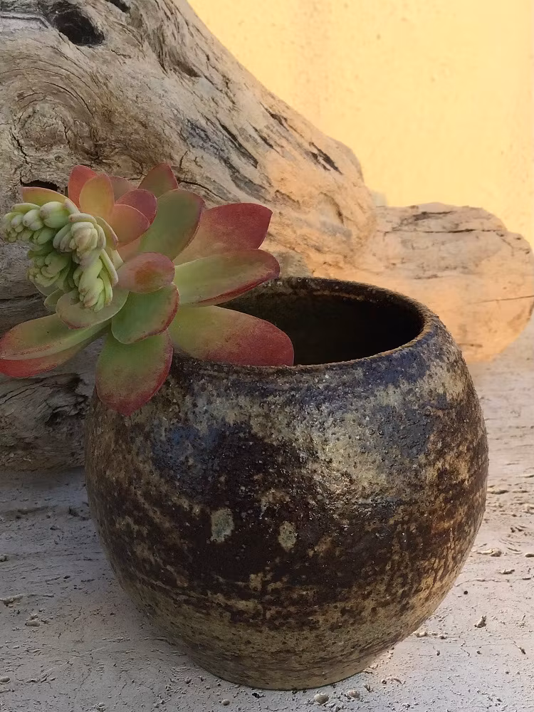 Keramikvasen är handgjord i bruna färgtoner.