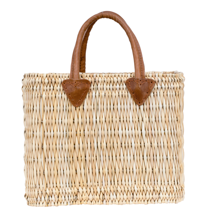 Stråväska med korta handtag i naturläder. Chic och praktisk, perfekt för shopping och strandutflykter.